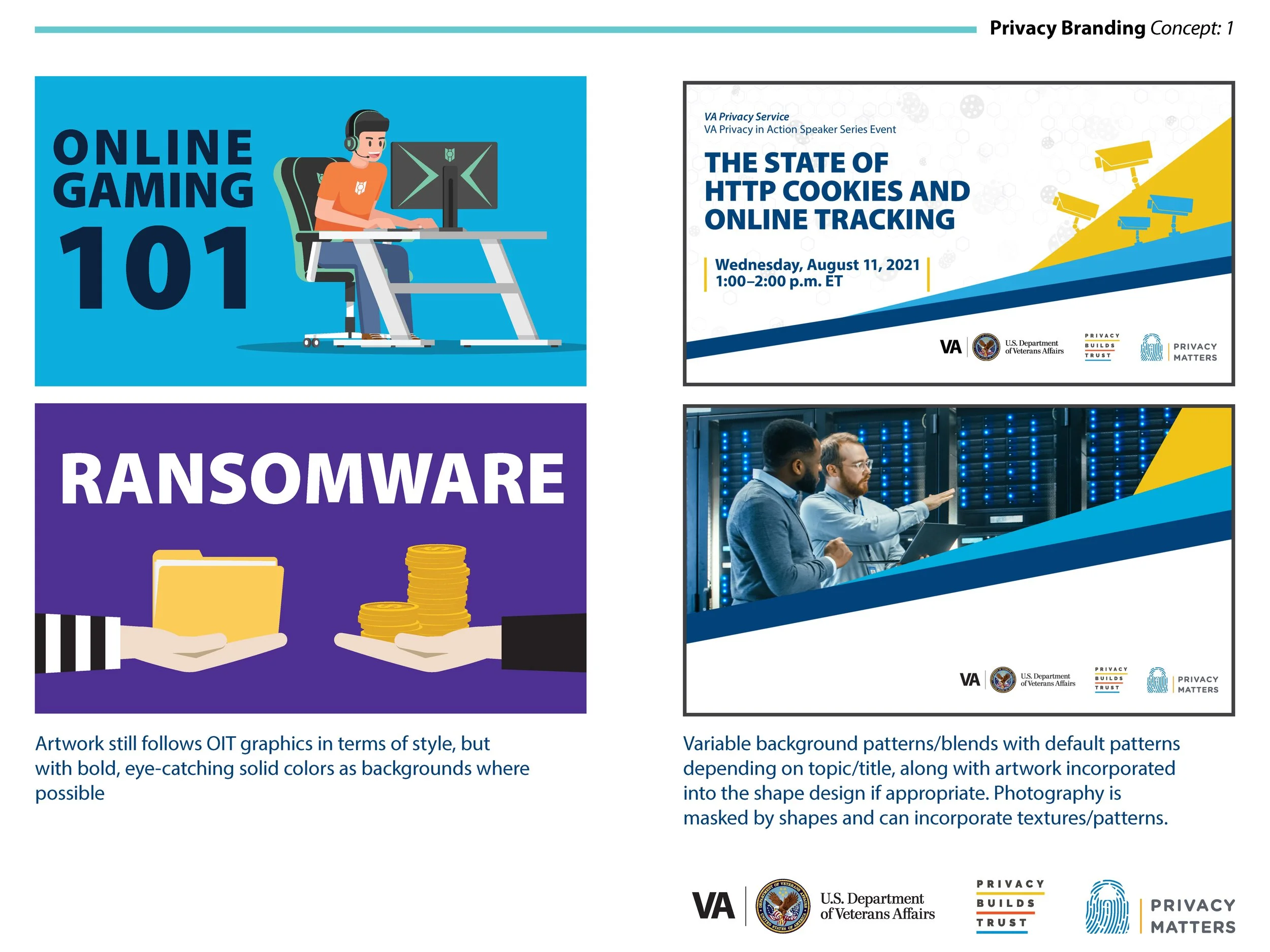 While supporting VA Privacy, we also led a rebranding effort to modernize the look and feel of materials being produced by the office to give some separation from OIT overall: