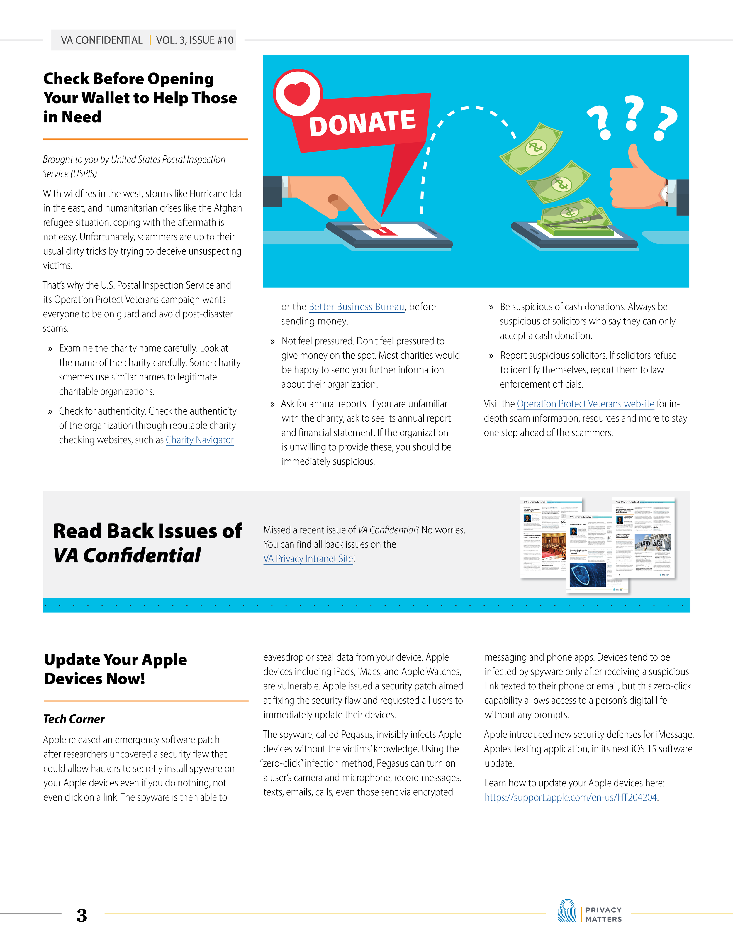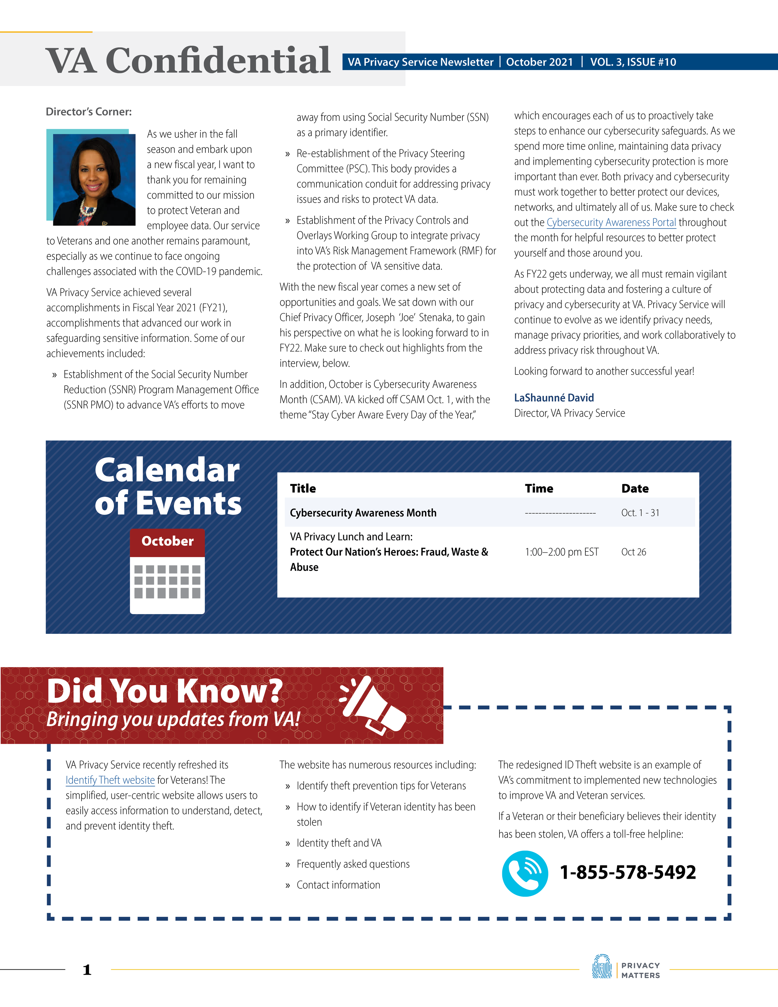 Operating under the umbrella of VA’s Office of Information and Technology (OIT), the VA Privacy Service provides guidance and oversight for privacy officers serving employees across all of VA. While supporting this office, I worked as one of two graphic design leads to provide a variety of 508-compliant print and digital materials including newsletters, factsheets, event flyers, posters, email headers/footers, and more.